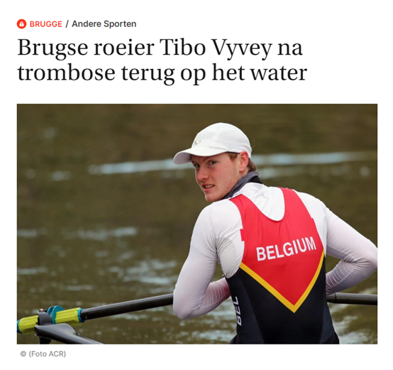 PERSARTIKEL: "Brugse roeier Tibo Vyvey na trombose terug op het water"