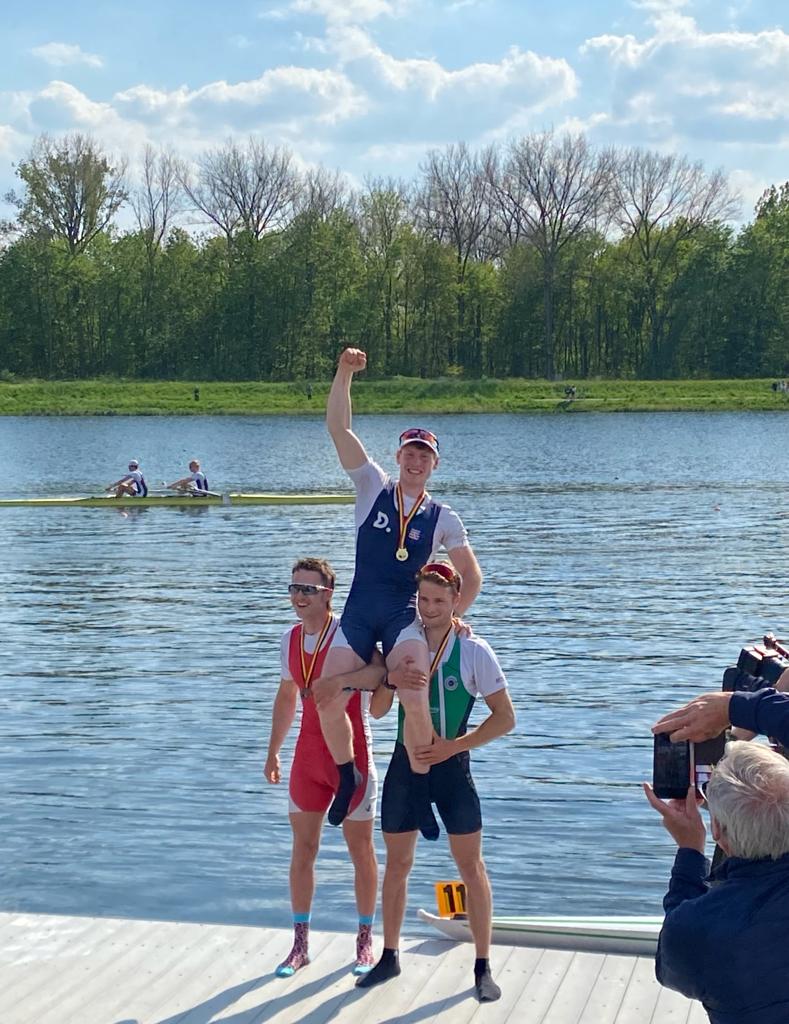 Het moment van de waarheid was aangebroken omstreeks 16u00, de finale van de lichte mannen skiff. Mijn grootste tegenstand kwam van mijn teammates Marlon Colpaert en Niels Van Zandweghe. Na een spannende eerste 1000m kon ik me zelf losroeien van hen, om zo op een mooie voorsprong van bijna 15seconden te eindigen voor Niels (2e) en Marlon (3e). Mijn eerste Belgische titel in skiff is een feit!